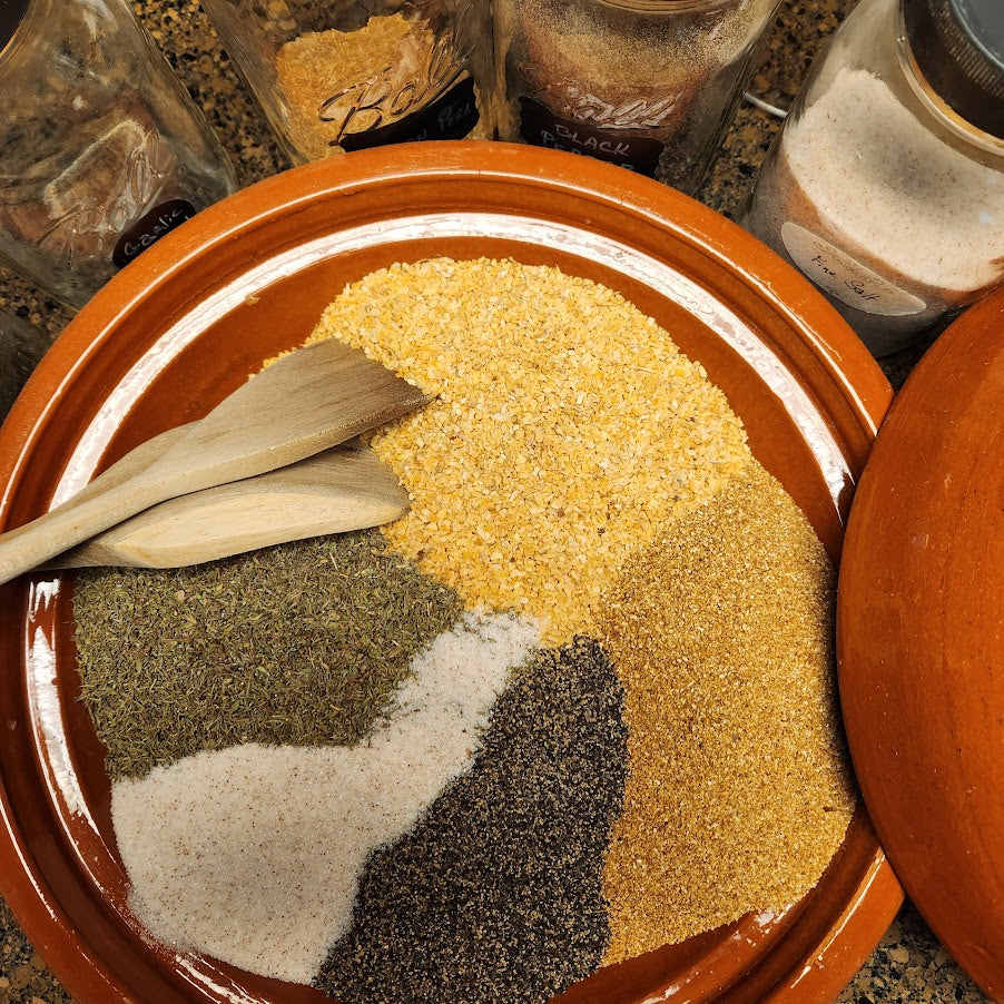 All ingredients are certified organic, non-irradiated, non-ETO, blended by hand in small batches. No preservatives or anti-caking agents are used.